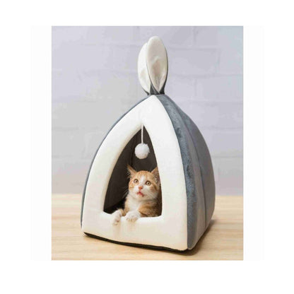 Diese süsse Katzenhütte mit Hasenohren schenkt deiner Samtpfote Wärme, Geborgenheit und Ruhe.