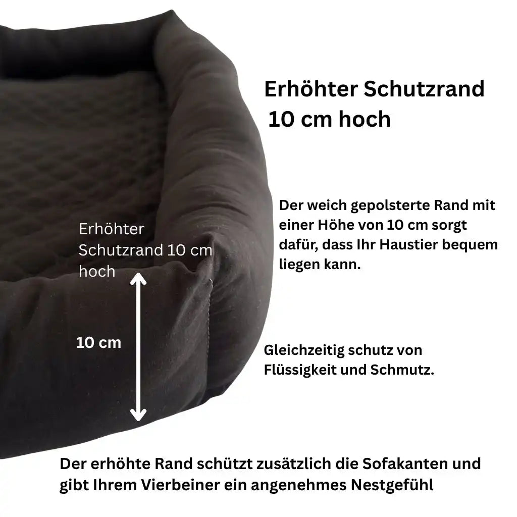 Hunde kuscheln gern auf dem Sofa doch Haare und Schmutz bleiben zurück. Der erhöhte Schutzrand hält dein Sofa sauber und gibt deinem Vierbeiner einen bequemen Platz.
