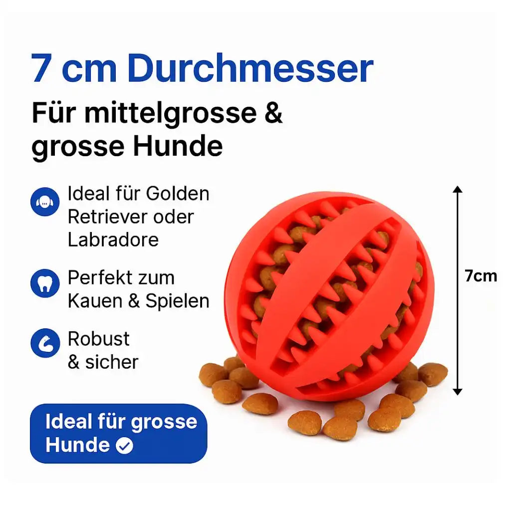 Der Kauball stärkt die Zähne, fördert den Geist und beschäftigt deinen Hund auf spielerische Art. Mit Leckerlis befüllbar und ideal für tägliche Auslastung.
