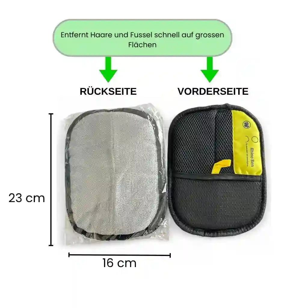 Dieser Tierhaar Handschuh entfernt Haare und Fussel schnell. Mit seinen 23 mal 16 Zentimetern liegt er gut in der Hand und deckt grosse Bereiche effizient ab. Du ziehst ihn einfach an und kannst sofort loslegen, egal ob Sofa, Teppich oder Kleidung.